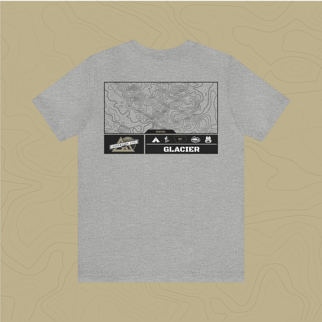 Glacier National Park - Adventure Life Trail Topographic Garment Dyed Tee