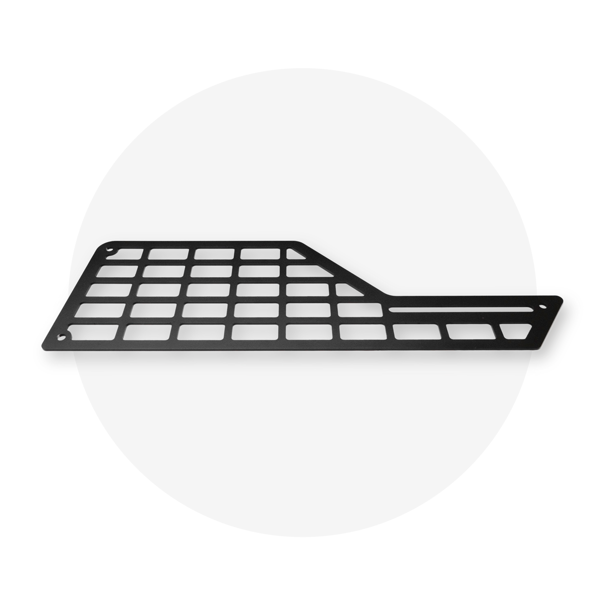 Maximize unused space, and keep important items close, all while giving your vehicle an awesome new look with the Cali Raised LED Center Console MOLLE Panel. Our center console MOLLE systems are custom-designed and laser-cut, providing a bent-to-perfection, seamless fit that’s sure to impress. We also powder-coat it in a durable black semi-gloss mini texture to protect against corrosion and anything else Mother Nature might throw at you. It’s not only strong, but it's also lightweight, which makes it incredibly versatile while out off the beaten path. Mount any of the smaller and more essential items you want at hand reach.