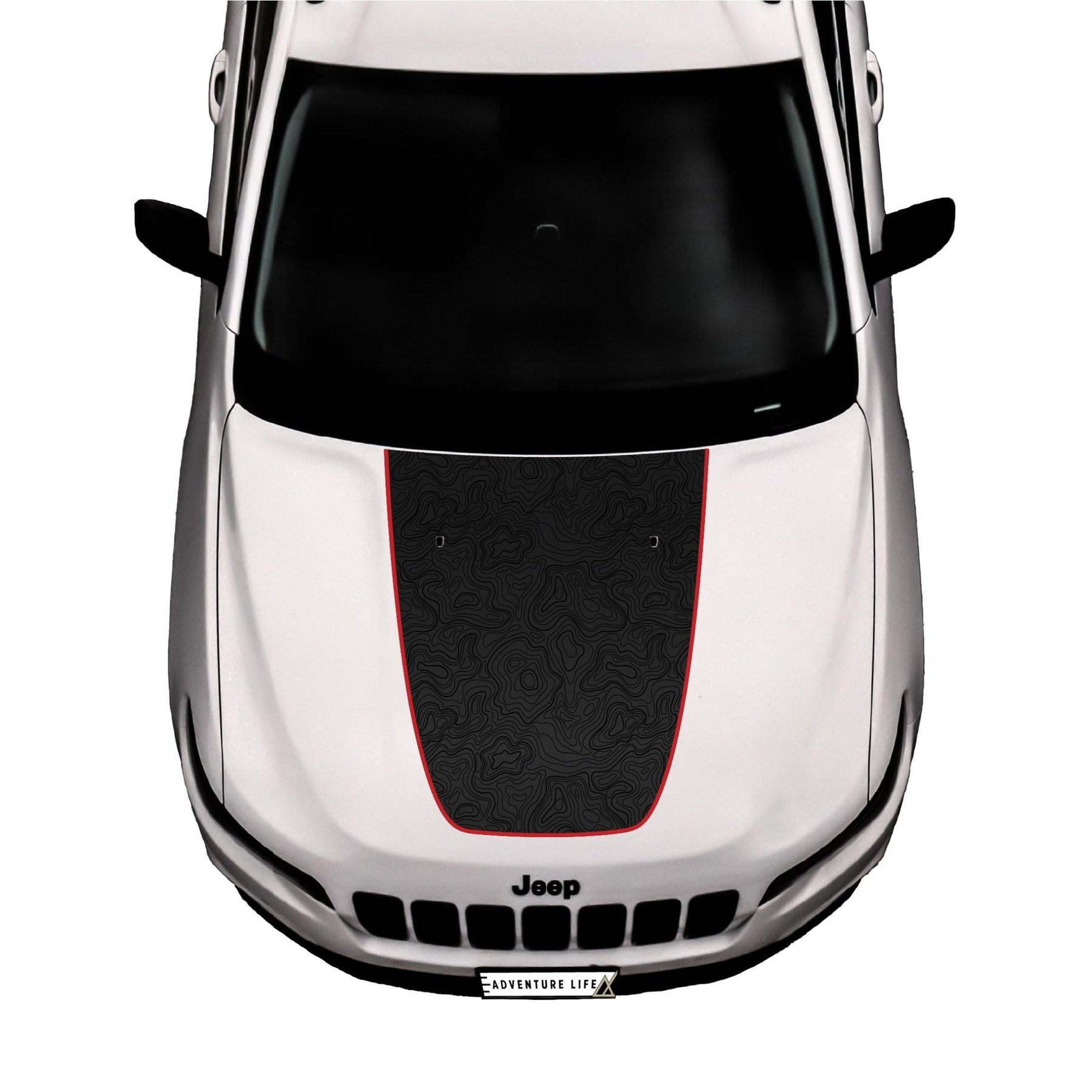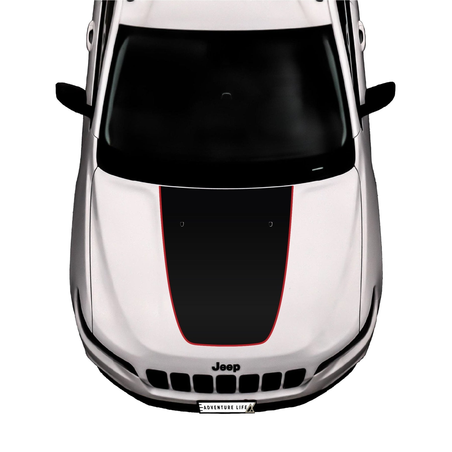 Upgrade the look of your Jeep Cherokee KL with this stylish and functional hood graphic, proudly designed and manufactured in the USA. This graphic is specifically designed to cut out hood glare from the sun shining off your hood while adding a touch of style to your vehicle.