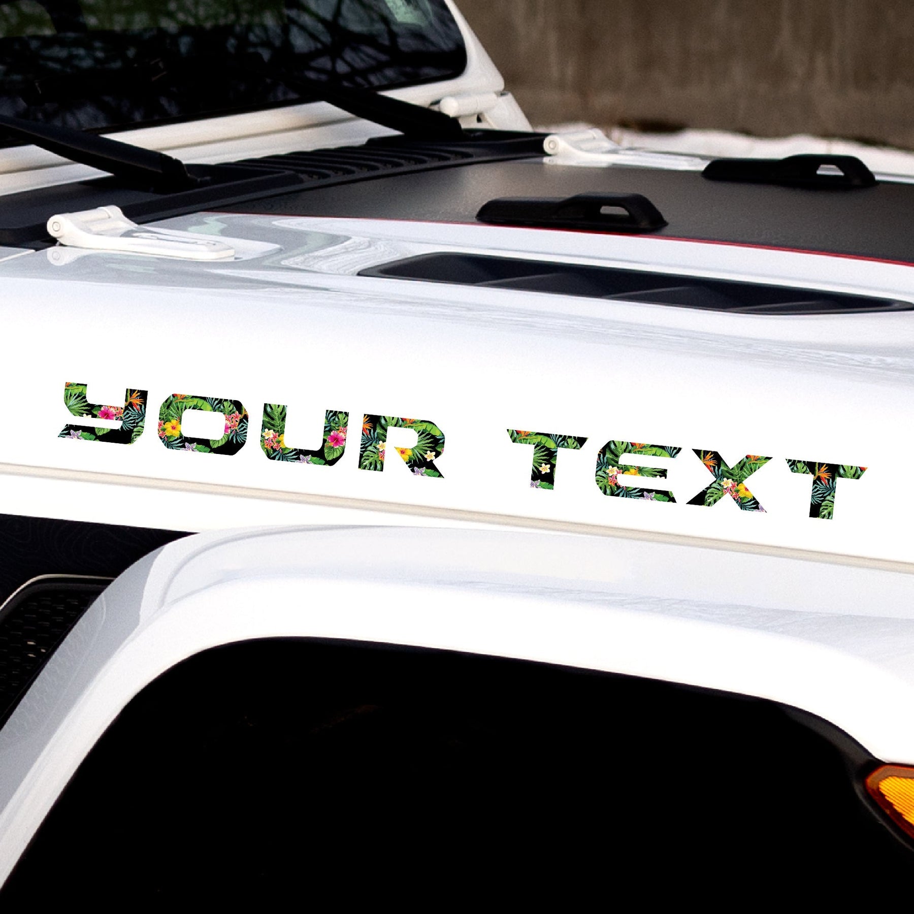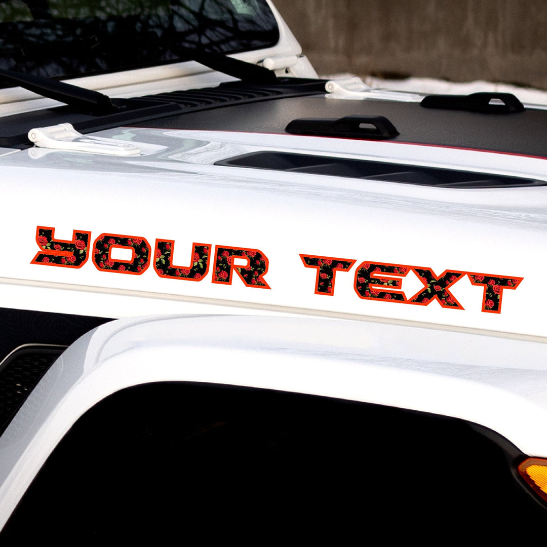 Includes: (2) Custom Text Decals, one for each side of the hood