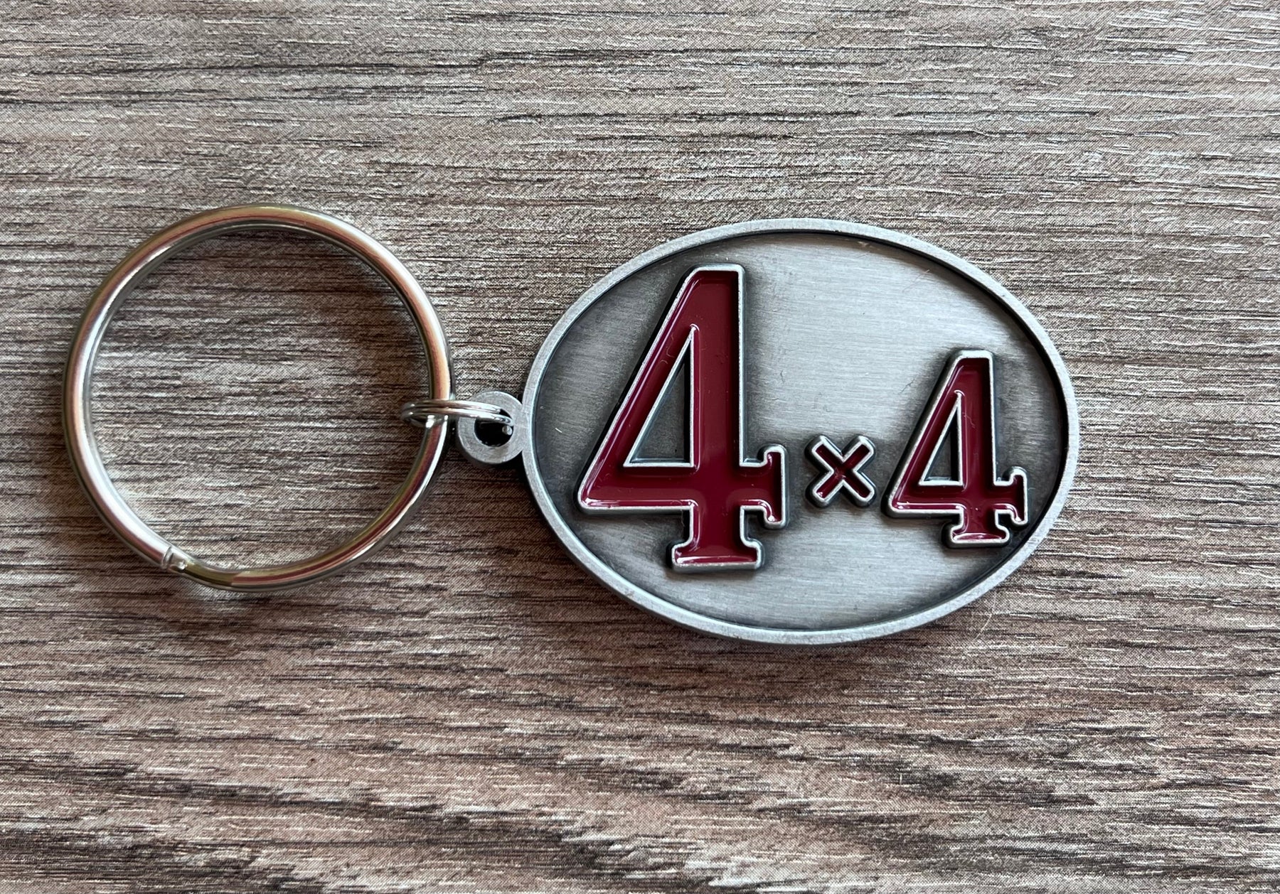 Comes with a double split ring for sturdy key attachment. 4x4 logo based on the logo on the back of FJ45 Land Cruisers but would make an excellent gift for any 4x4 lover.