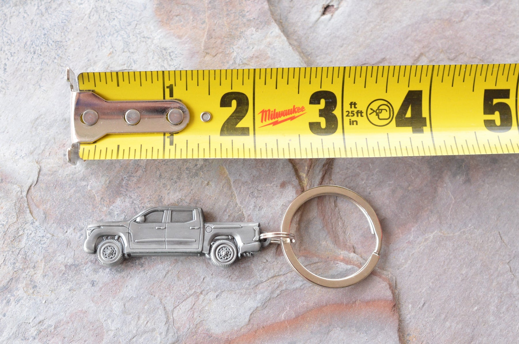 Our 3D metal 2 sided Toyota Tundra Key Chain. The total length is approximately 3.25" by .75".
