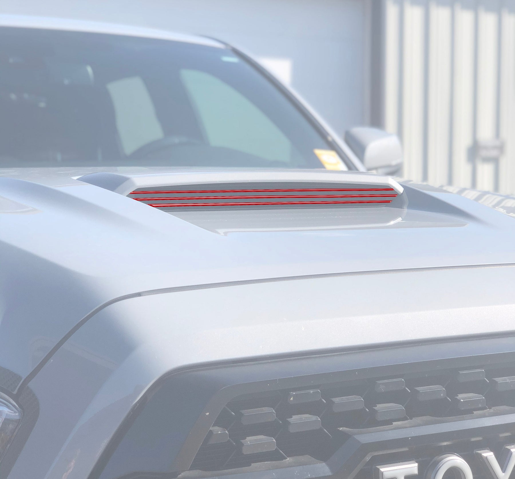 Add a new exterior look to your Toyota Tacoma by installing TUFSKINZ Inner Hood Scoop Line Accents. These pieces adds style and protection to your vehicle and is fittingly positioned on the 3 lines inside the hood scoop.