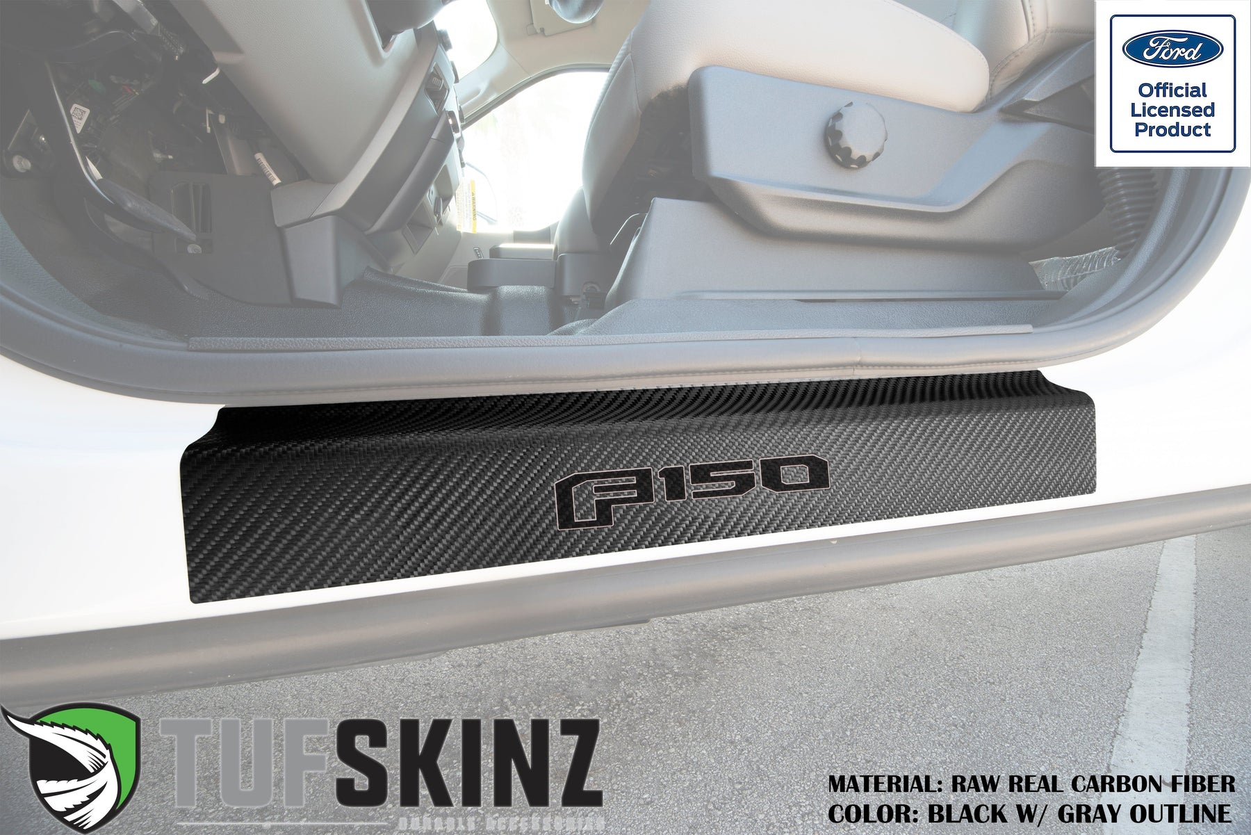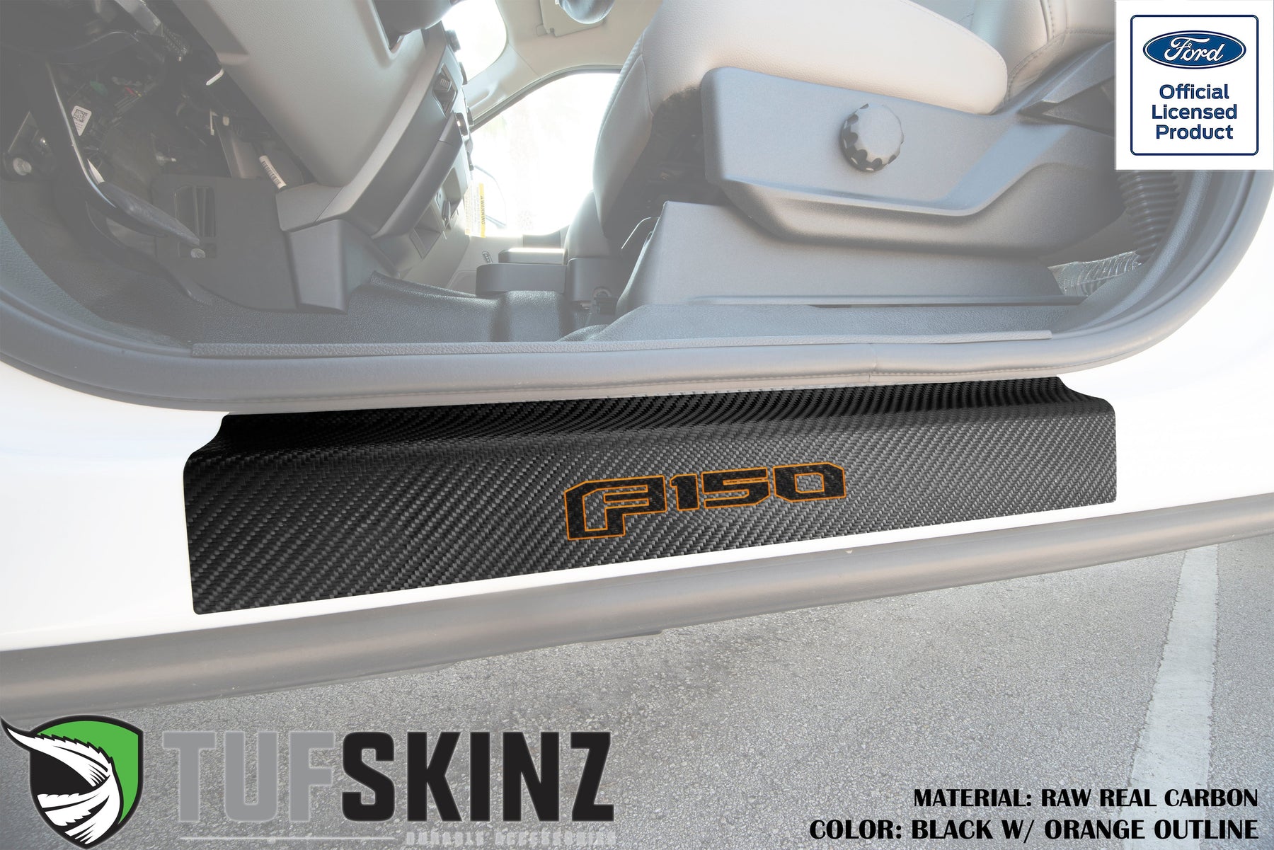 Add a new interior look to your Ford F-150 by installing TUFSKINZ Door Sill Protection Pieces. These kits add style and protection to your vehicle and are fittingly positioned on top of each painted door entry sill area. Front and Rear Sill Kits are sold separately.