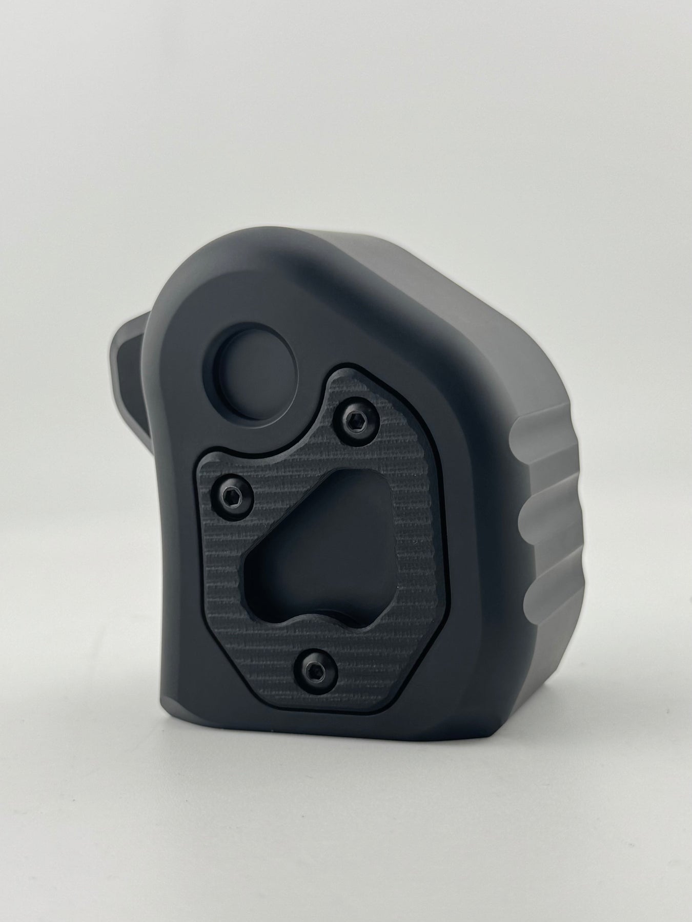 Made in the USA for the 6th Gen 4Runner. CNC machined with either 6061 aluminum or Acetal (a machinable plastic) main body that is Cerakoted in a flat black. Acetal will dissipate heat or cold much quicker making it a great option for very cold or hot environments, while the Aluminum will give a more weighted feel. The side scales are CNC machined out of G10 (knife handle material) available in multiple colors, and interchangeable. Give your vehicle the quality feel it deserves. Fits 2025-Current 4Runner.