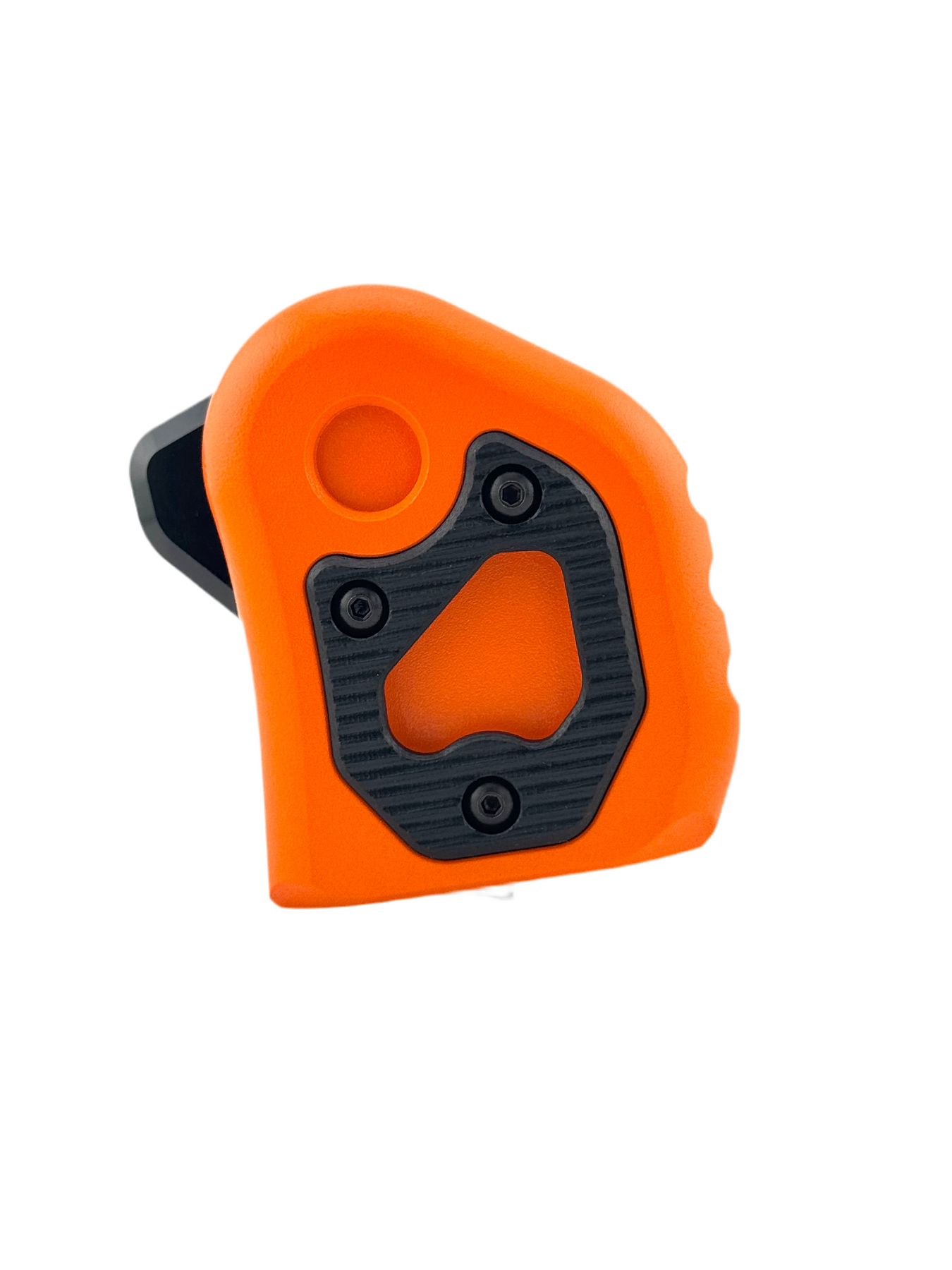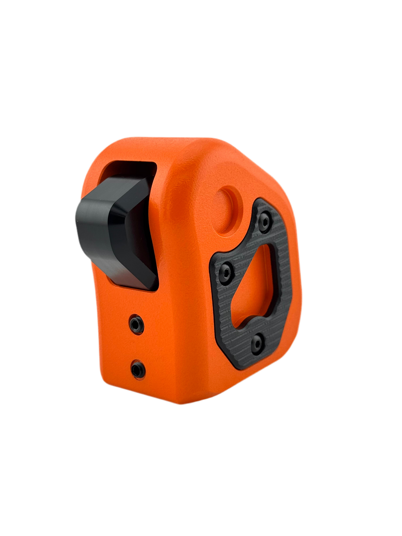 Shifter knob made in the USA for the 6th Gen 4Runner. CNC machined 6061 aluminum body that is powder coated in a FDE, Turquoise, Grey, or Orange texture. The side scales are CNC machined out of black G10 (knife handle material). Available with matching climate knob and mode selector cover. Give your vehicle the quality feel it deserves. Fits 2025-Current 4Runner.