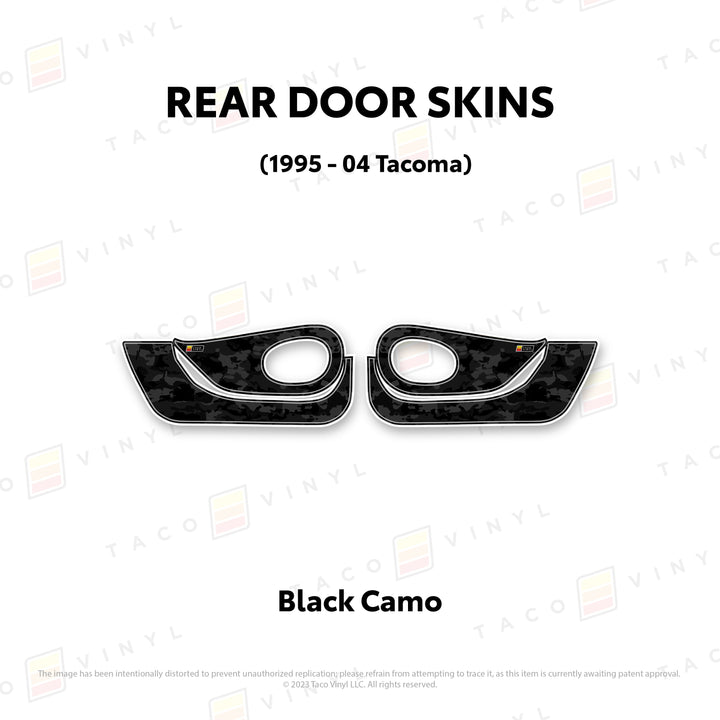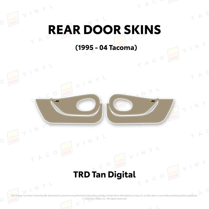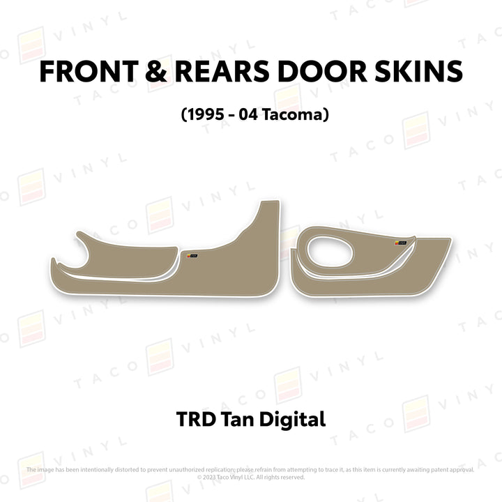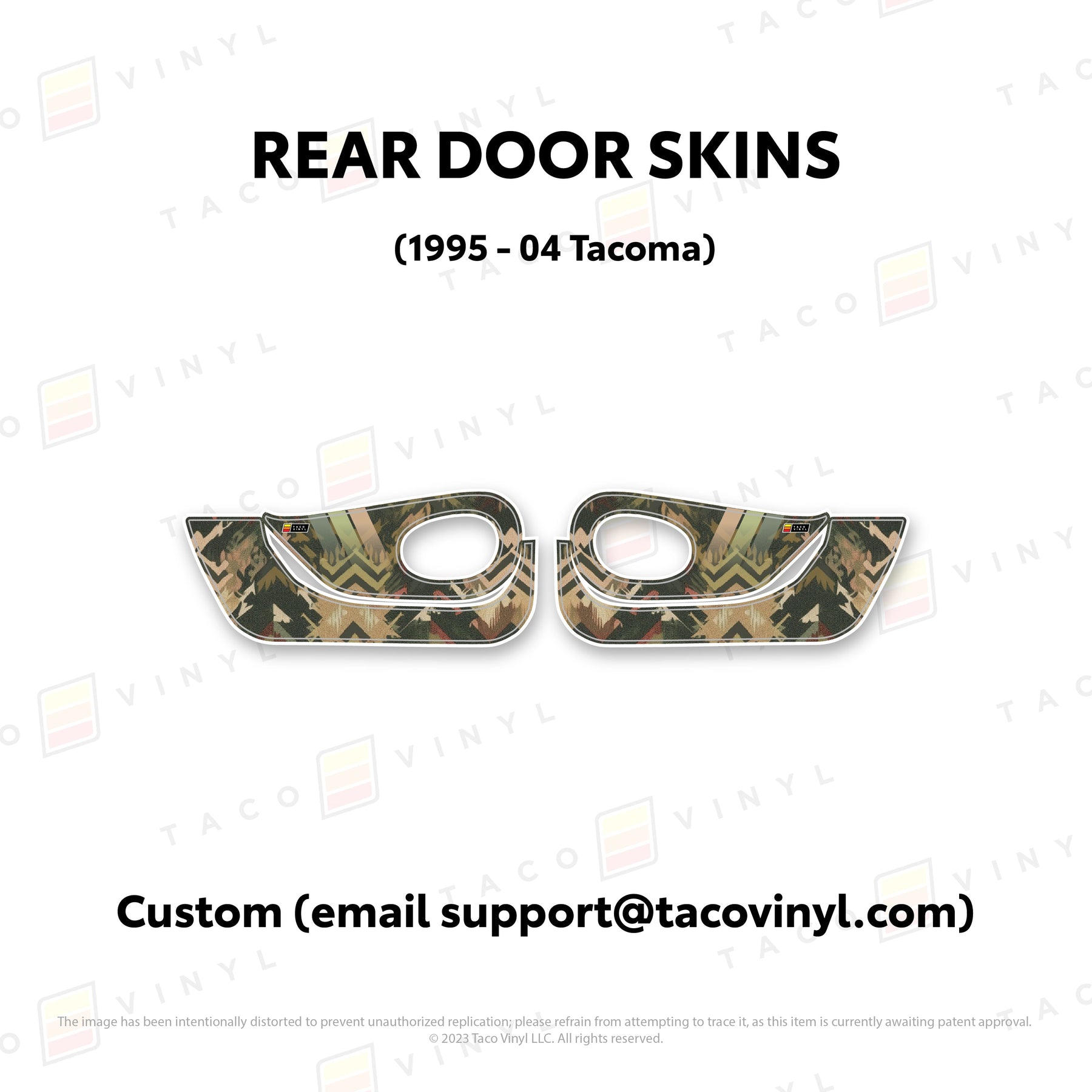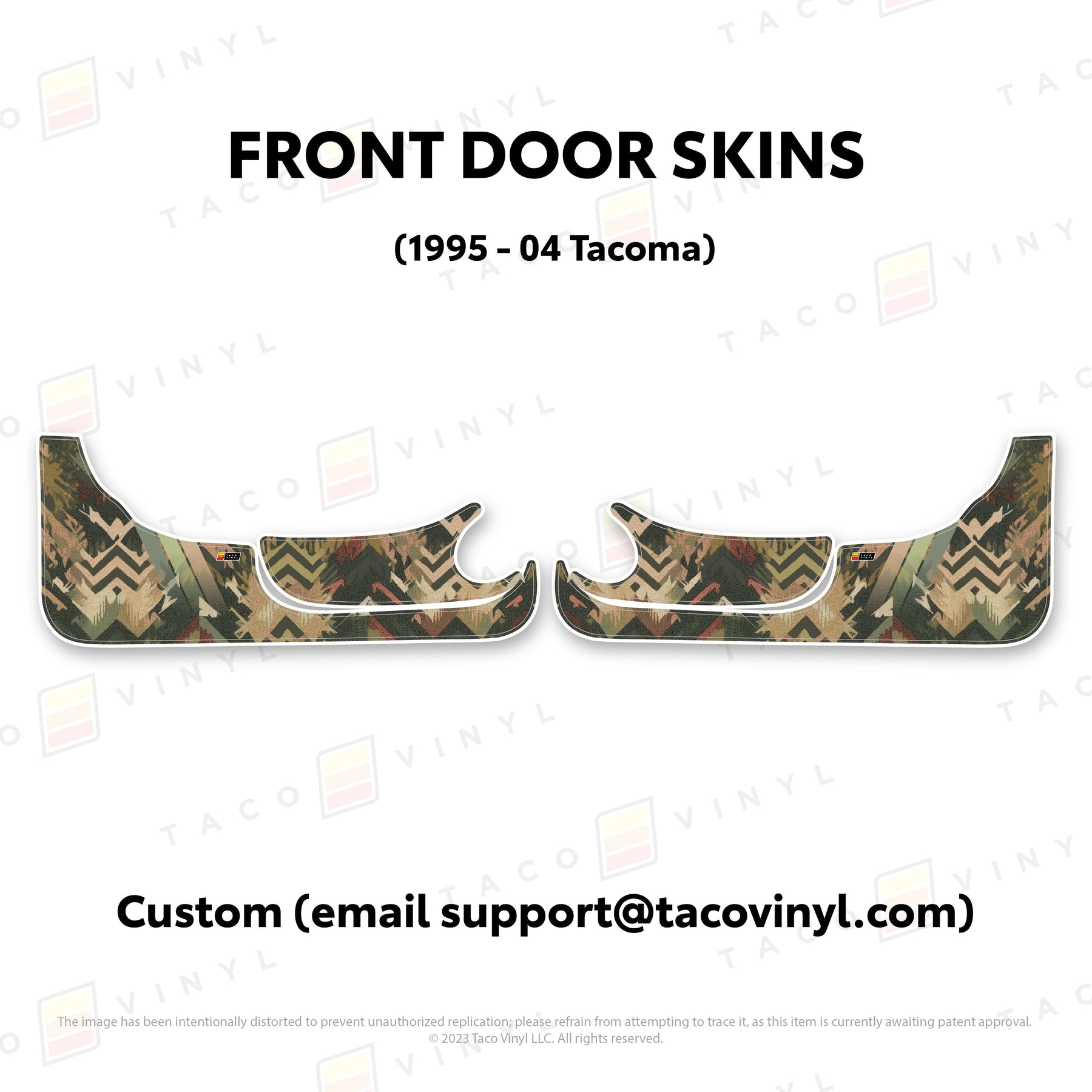 Welcome the world's first door skins for your 2nd gen Tacoma. Our door skins are made of the best and thickest material to get the job done. Initially created to shield against door wear and tear caused by boots, tools, pets, and recreational activities, we later realized that our door skins also boast aesthetic appeal. Whether you intend to maintain your truck for the long haul or have it on lease, our door skins effectively preserve the door panel's condition while imparting a stylish design if desired.