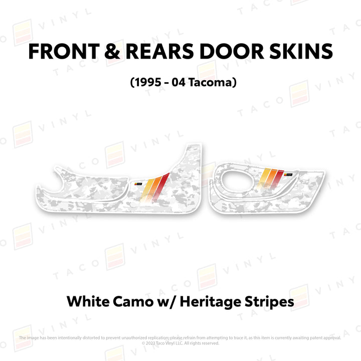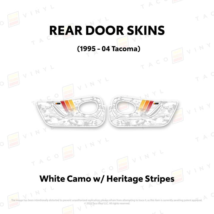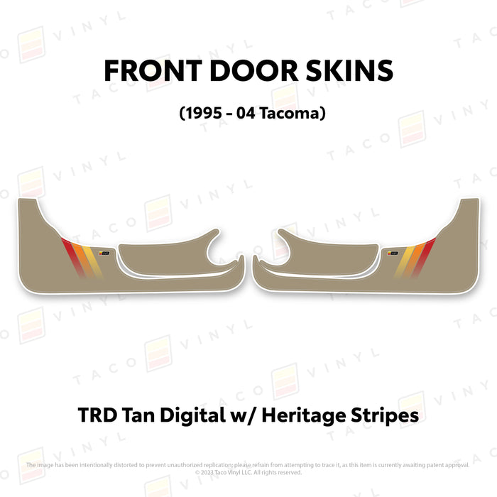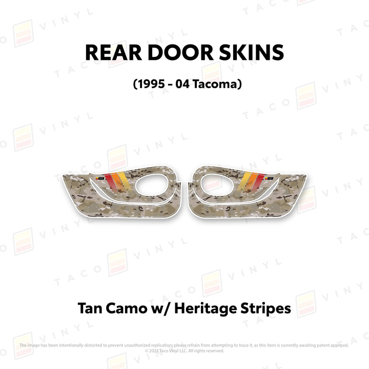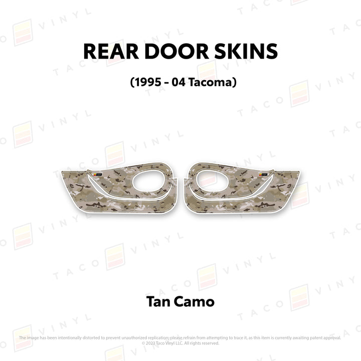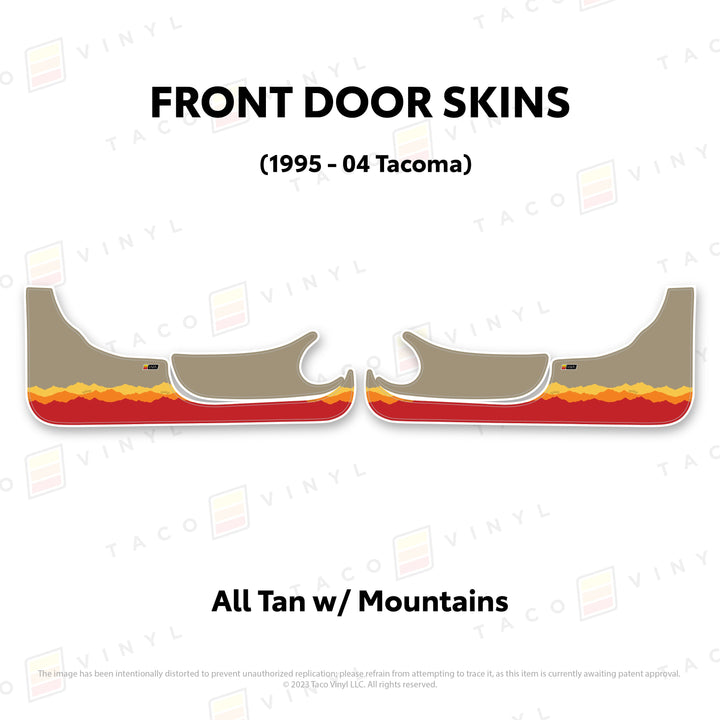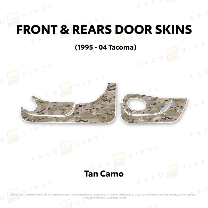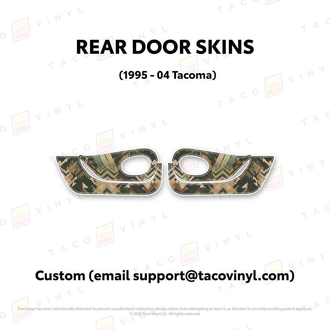 Welcome the world's first door skins for your 2nd gen Tacoma. Our door skins are made of the best and thickest material to get the job done. Initially created to shield against door wear and tear caused by boots, tools, pets, and recreational activities, we later realized that our door skins also boast aesthetic appeal. Whether you intend to maintain your truck for the long haul or have it on lease, our door skins effectively preserve the door panel's condition while imparting a stylish design if desired.