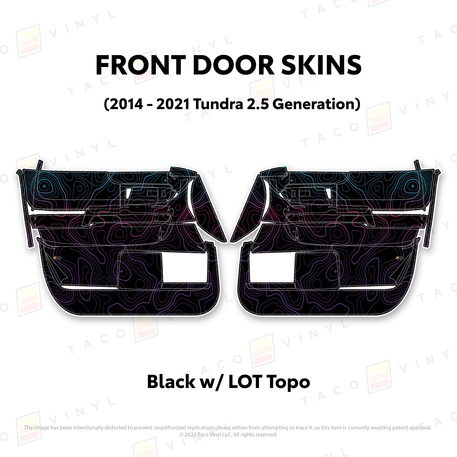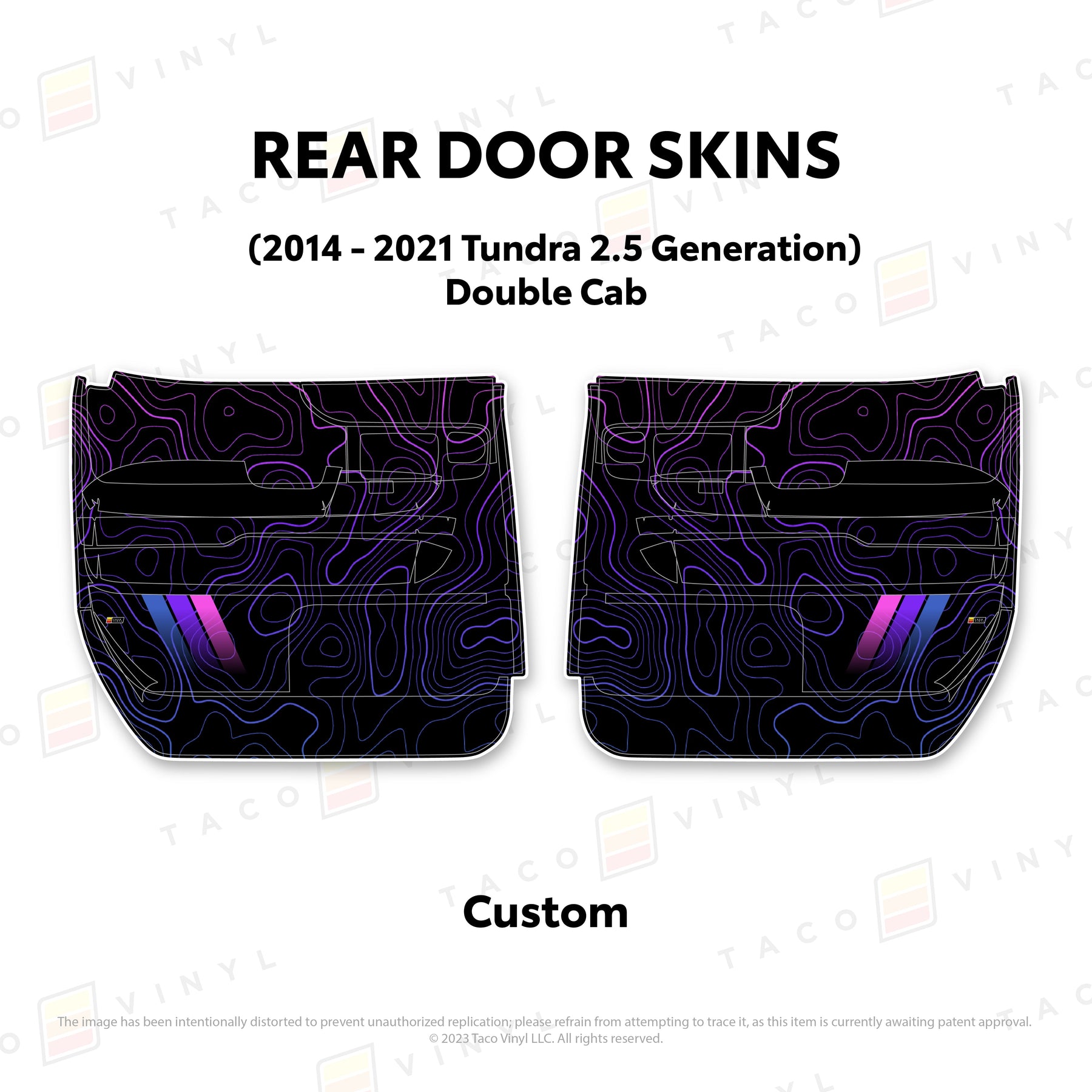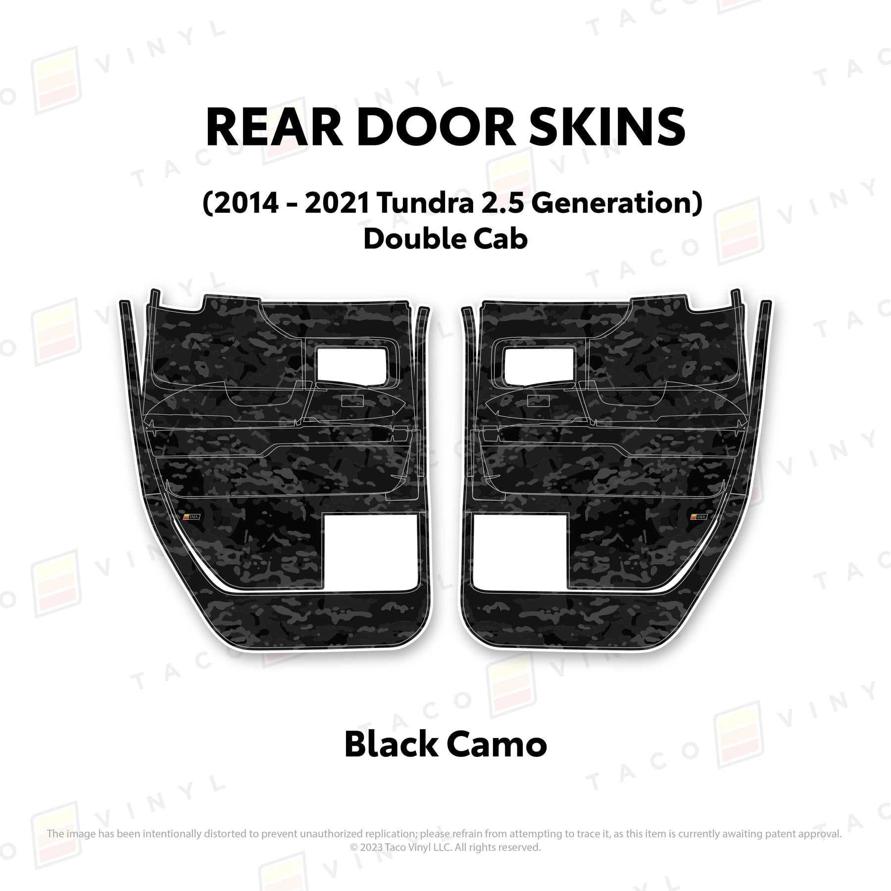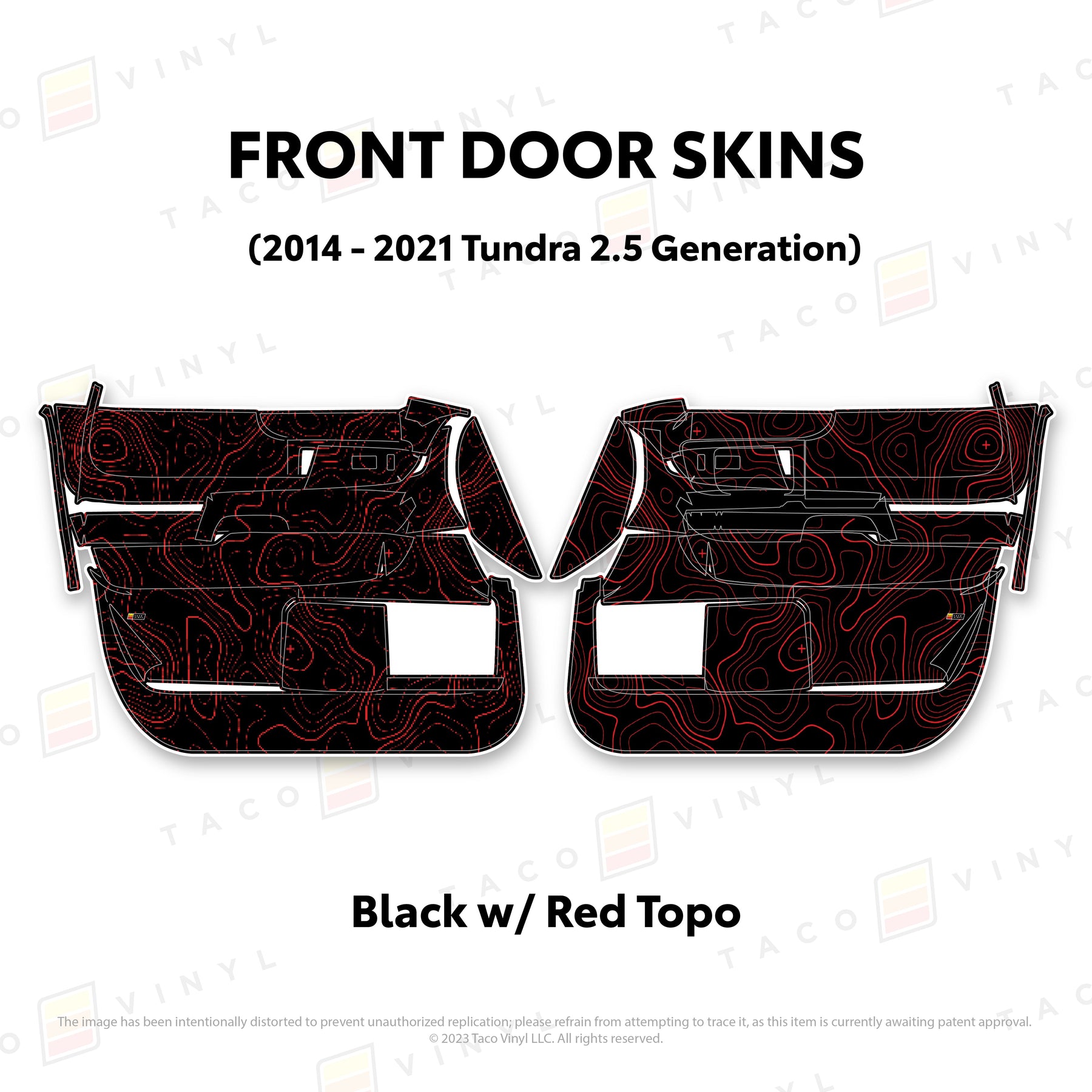 Introducing the world's premier door skins tailored for your 2.5 (14-21) generation Tundra. Crafted from top-tier, robust materials, our door skins are engineered to excel. Originally conceived to shield against the rigors of everyday use, from boot scuffs to pet scratches and more, we soon realized their added visual allure. Whether you envision a lifelong partnership with your truck or are on a lease, our door skins ensure the preservation of your door panels while injecting a dash of style into the mix, should you desire.