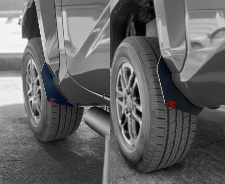 • Innovative Mud Flaps Our unique 'Mudflaps' enhance protection by minimizing the debris and mud flung onto your 4th Gen Tacoma's doors from the exposed tire treads. These Mudflaps are far from ordinary; they are not just any universal, flimsy rubber pieces hastily assembled. They are custom-designed specifically for the 2024+ Tacoma.