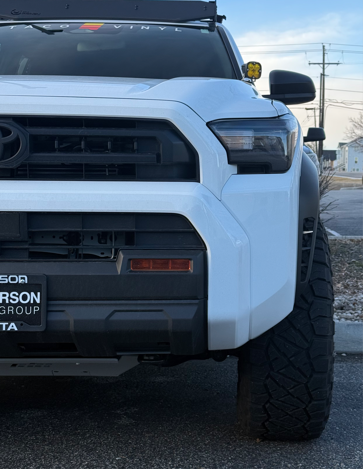 Tired of the snow and dust reflecting back into your eyes while driving your new 4Runner? We've made overlays that are super easy to install ! Eliminate the reflection from the stock white fog lights and add an amber or yellow look to the front of your rig. This film is meant to withstand heat from the lights while still holding up against debris from the road. Upgrade your fog light output with our fog light overlays.