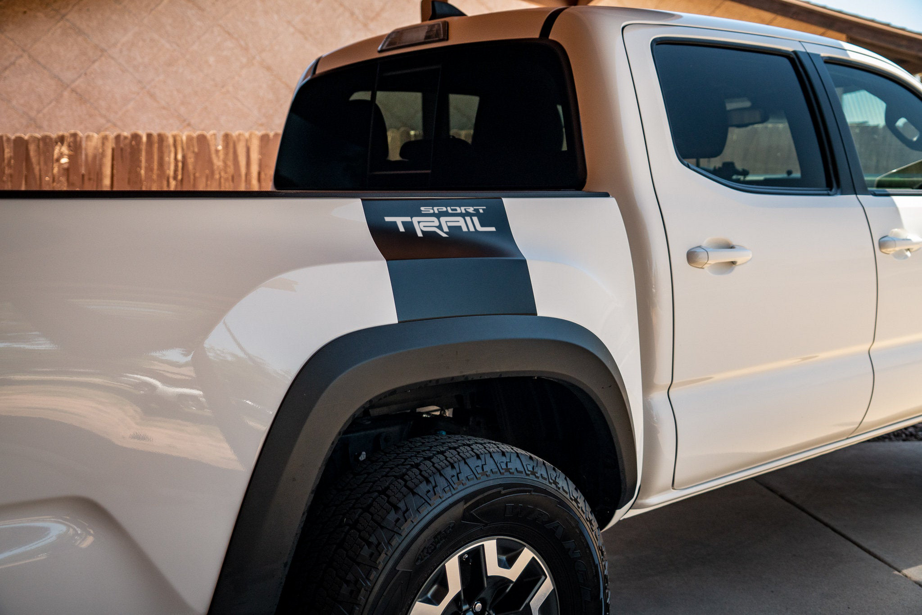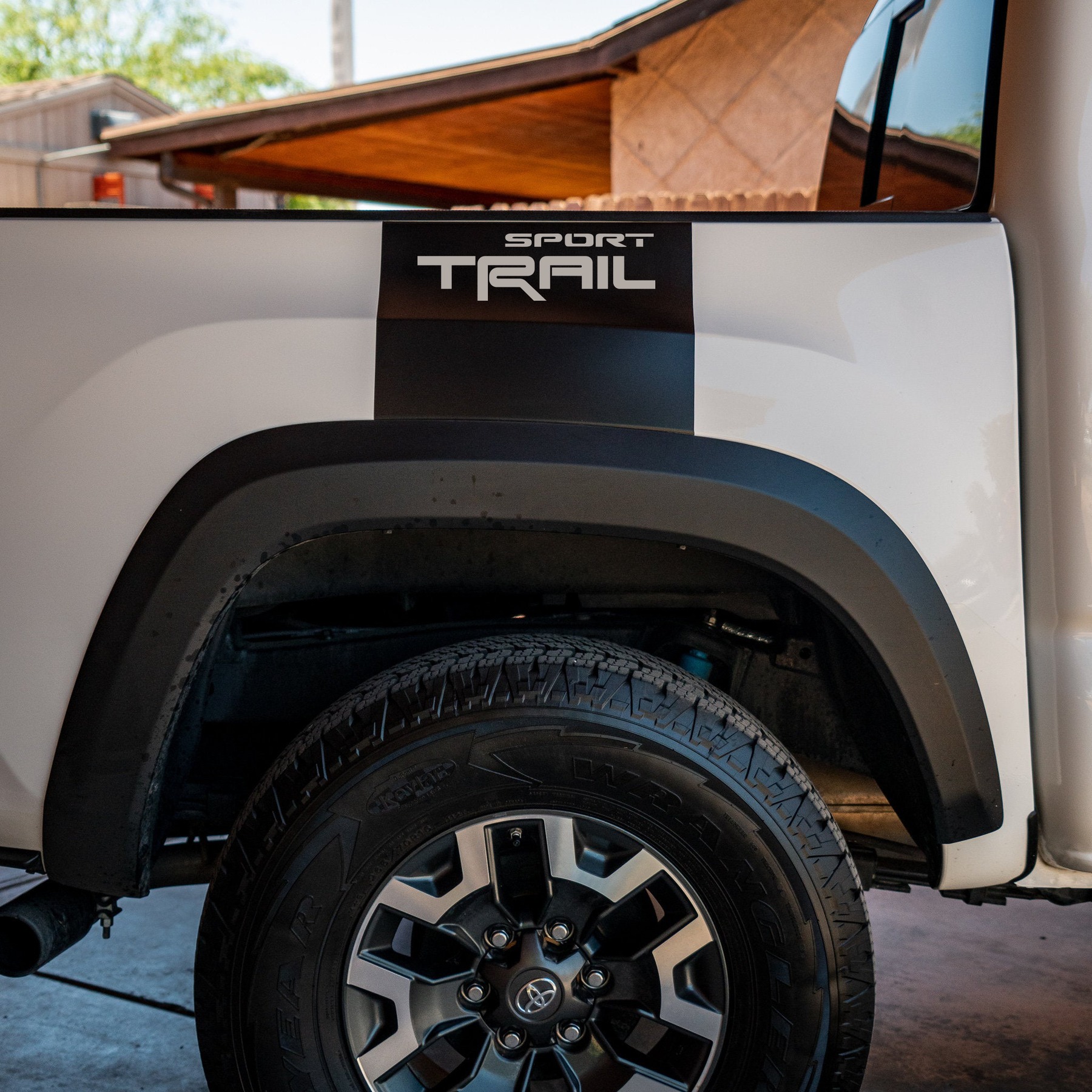 These are the coolest bed decals on the market. Designed to go right over the rear wheel well. They have a reverse cutout to show your paint color through the die cut areas. Moderate level install. Please use the notes section on the order page to specify what text or design you want die cut into the decal as well as color choice.