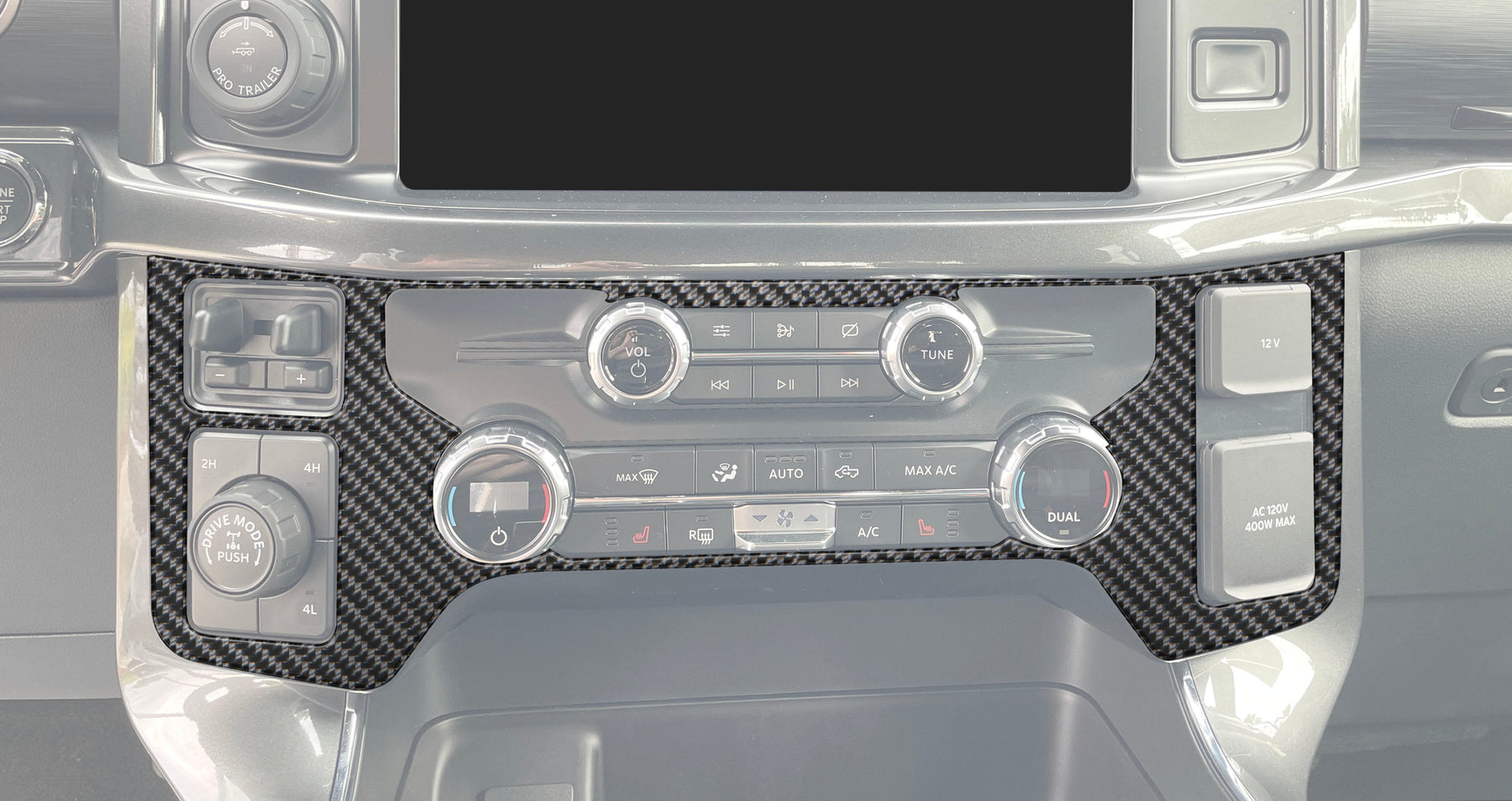 Add a new look to your Ford F-150 by installing TUFSKINZ Climate Control Accent. This kit adds style and protection to your vehicle and is fittingly positioned on climate control on your center dash.