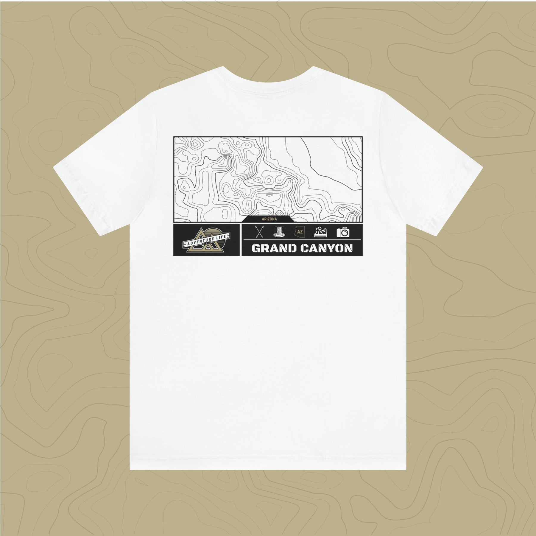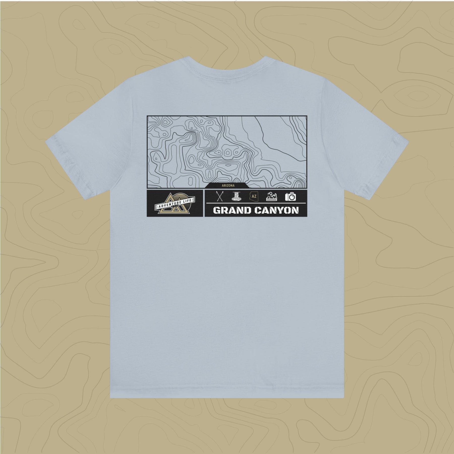 Embrace the adventure of Grand Canyon National Park with our topographic map tee, a tribute to nature's beauty.