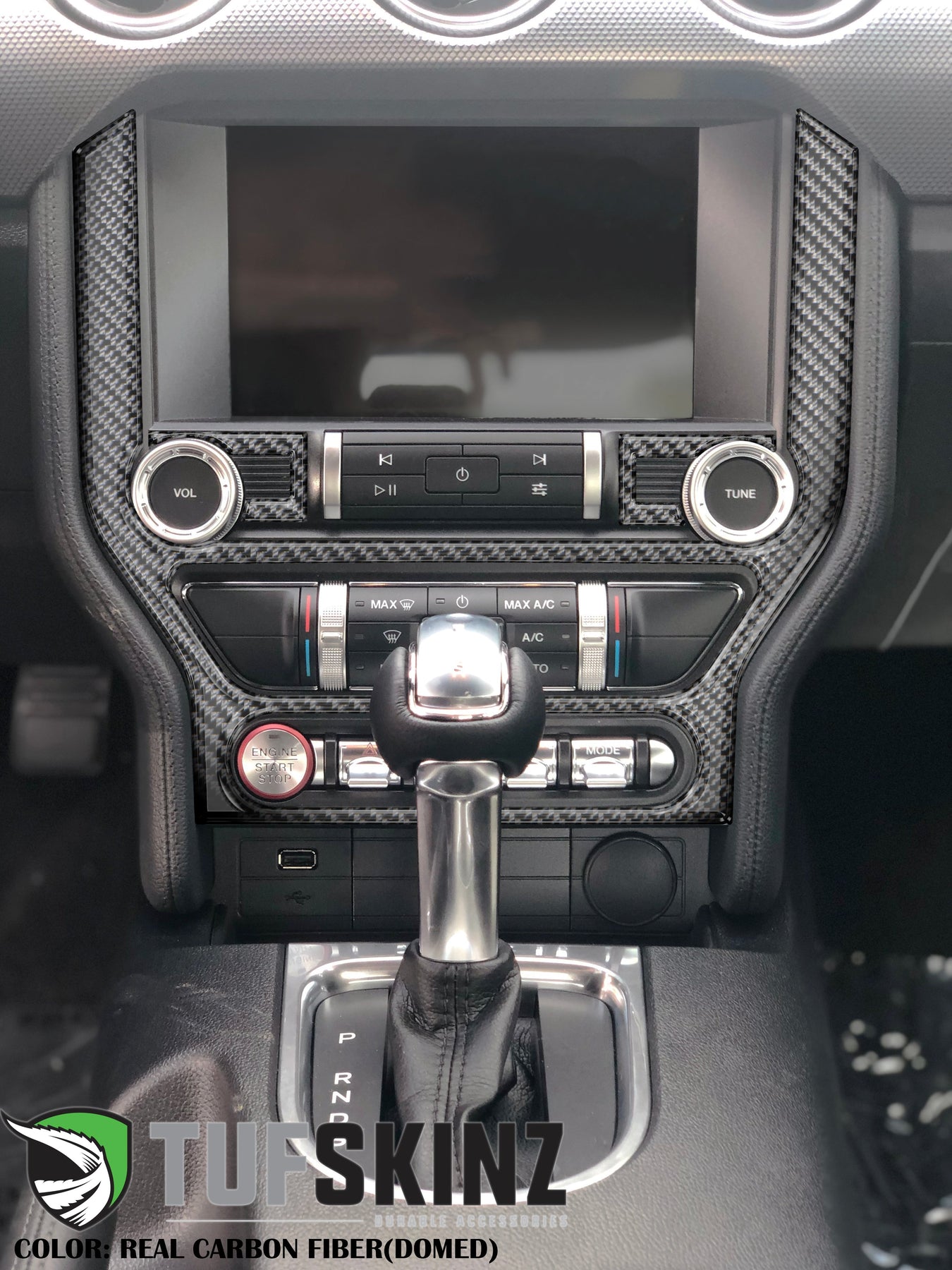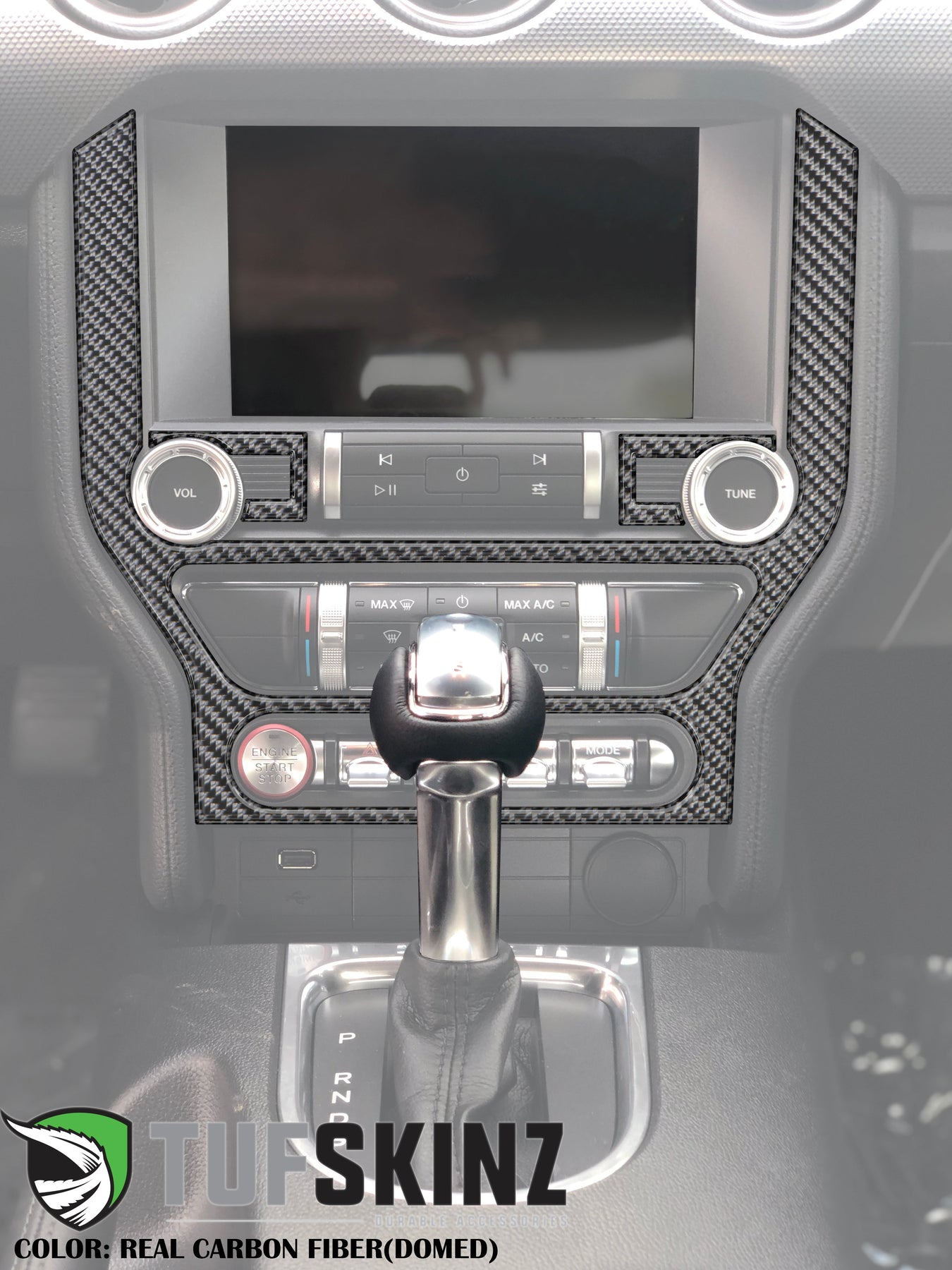 Add a new interior look to your Ford Mustang by installing TUFSKINZ Radio Accent Trim. This kit adds style and protection to your vehicle and is fittingly positioned around the radio display and knobs.