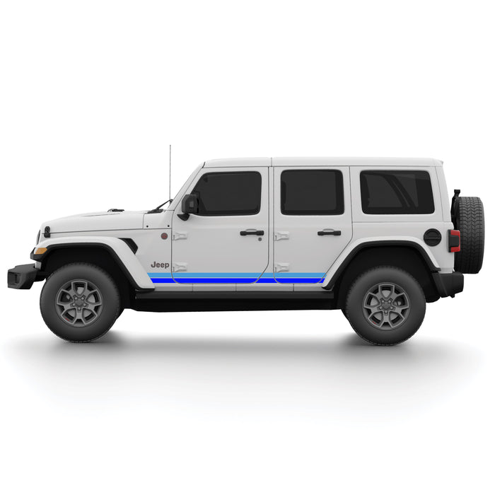 Elevate your Jeep Wrangler JL's aesthetic with our Rocker Double Stripe Off-Road Decals and Stickers. Choose from a selection of graphics to give your Wrangler a unique and eye-catching look. Our comprehensive Wrangler JL Graphics Kit includes precise sections for both the driver and passenger sides, along with easy-to-follow installation instructions.