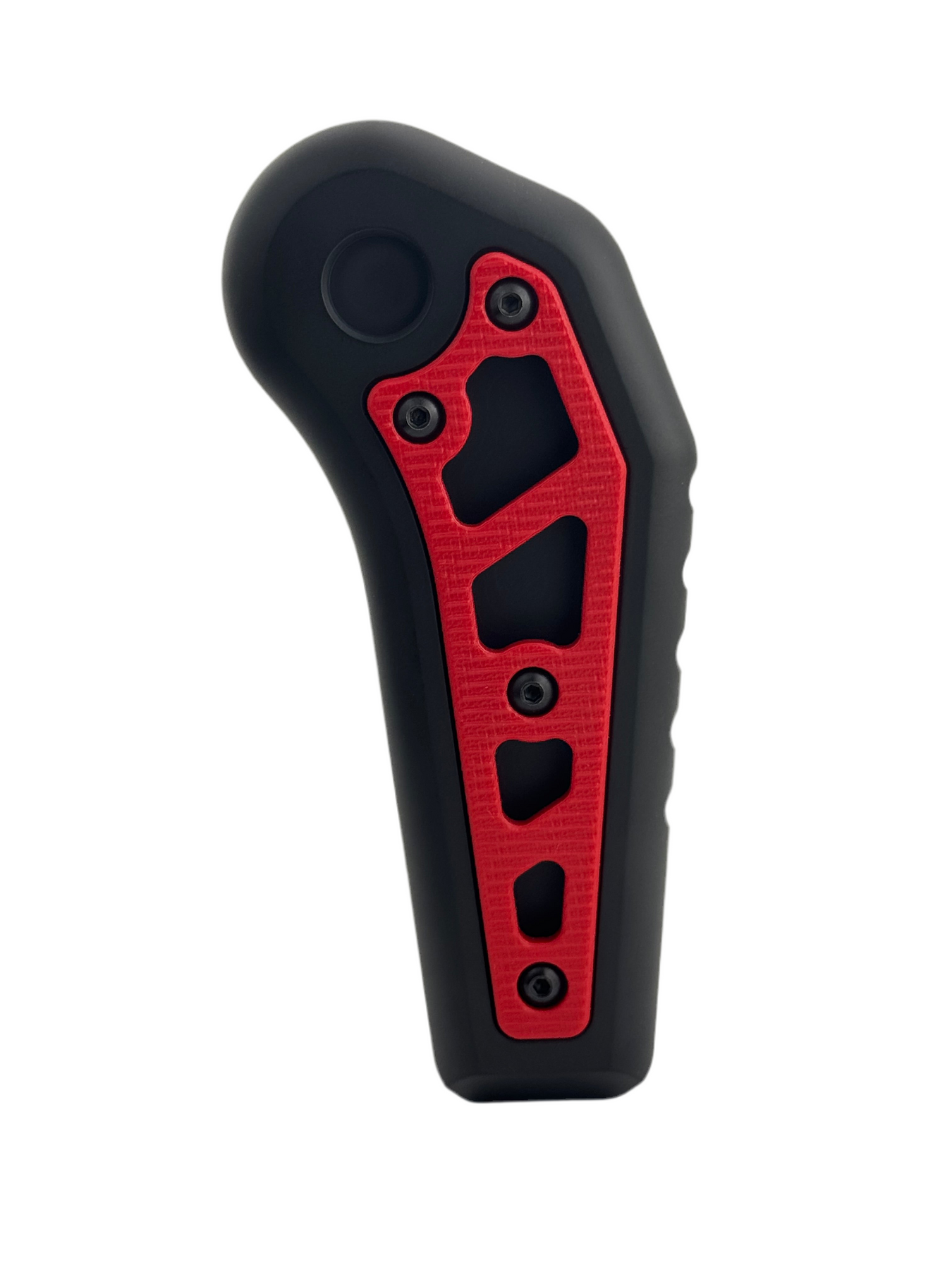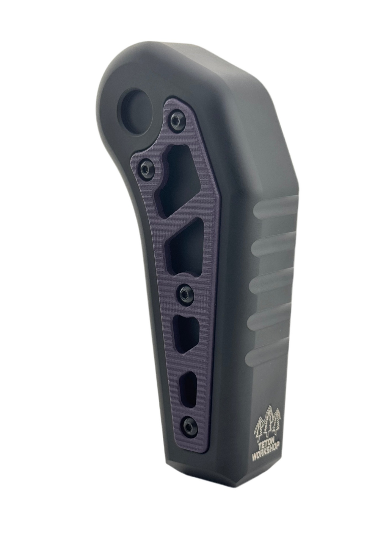 Proudly made in the USA, design uses a combination of a Cerakoted matte black aluminum main body, and interchangeable colored G10 scales. Both of which are CNC machined in our small shop located in Idaho Falls, Idaho. With jimpings added to the back of the shifter for added traction. Easy installation with everything required for install included. Fits Toyota Tundra 2007-2021